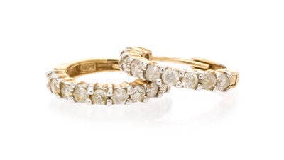 A Pair of 14 Karat Yellow Gold and Diamond Hoop Earrings,