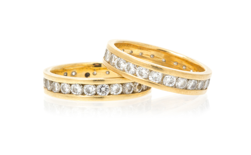 A Pair of Yellow Gold and Diamond Eternity Rings,