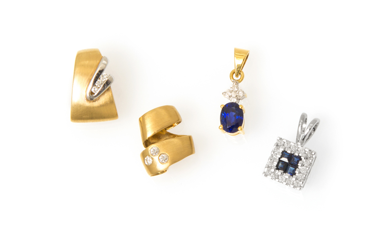 A Collection of 18 Karat Gold, Diamond and Sapphire Pendants,