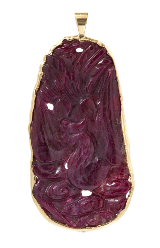 A Yellow Gold and Carved Ruby Pendant,
