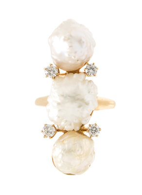 containing a three baroque pearls and four round brilliant cut diamonds weighing approximately 0.22 carat total.