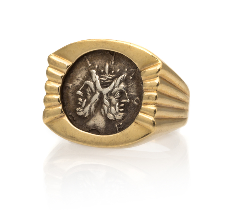 A 14 Karat Yellow Gold and Ancient Roman Coin Ring,