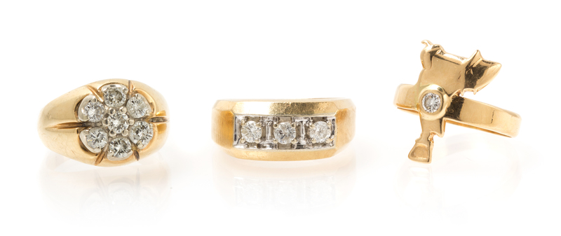 A Collection of 14 Karat Yellow Gold and Diamond Rings,