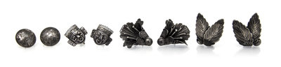 consisting of a pair of earclips with a double leaf design, a pair of earclips in a flower design, a pair of round etched dome earclips together with a pair of earclips in the shape of figural masks.
