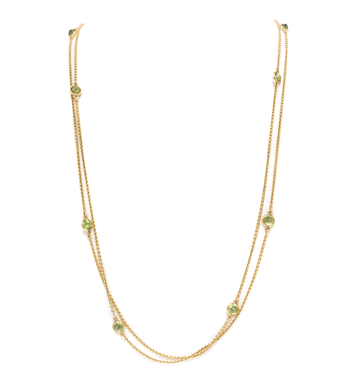 An Antique 14 Karat Yellow Gold and Peridot Longchain,