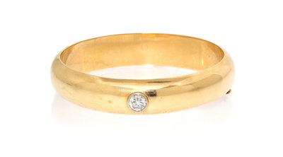 A 14 Karat Yellow Gold and Cubic Zirconia Bangle Bracelet,