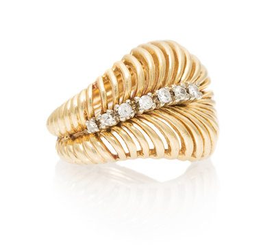 attributed to Olga Tritt, in an open wirework design containing seven round single cut diamonds weighing approximately 0.16 carat total.Stamp: 14K.