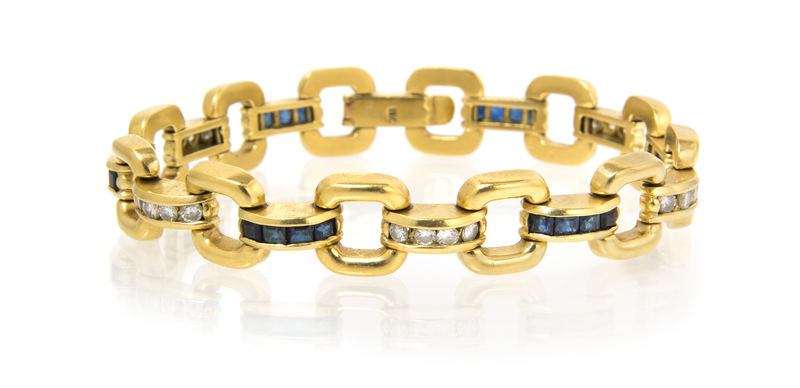 An 18 Karat Yellow Gold, Diamond and Sapphire Bracelet,