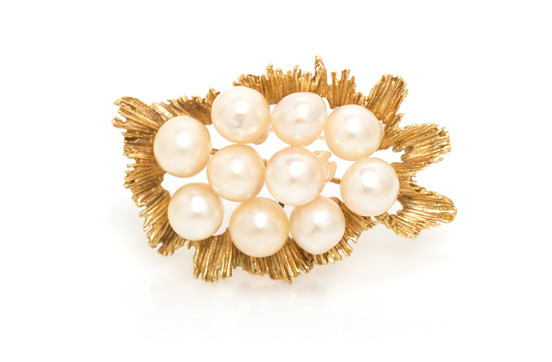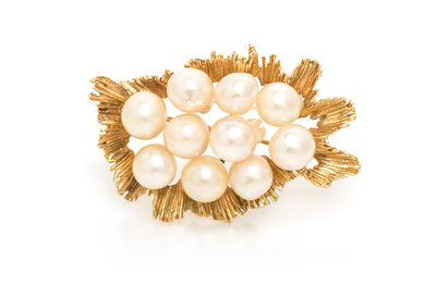 A 14 Karat Yellow Gold and Cultured Pearl Brooch,
