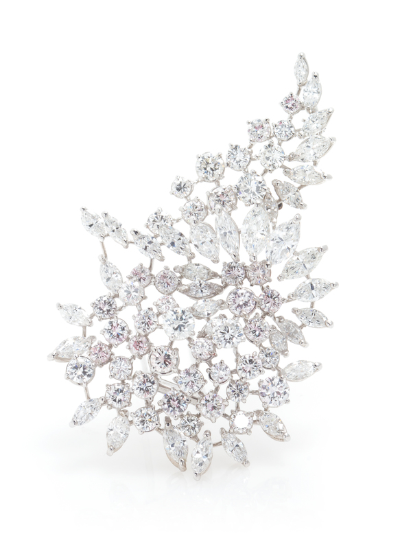 in an open wirework design, containing 43 round brilliant cut diamonds weighing approximately 7.21 carats total and 34 marquise cut diamonds weighing approximately 5.37 carats total.