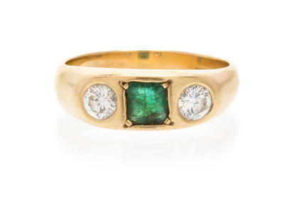 A Yellow Gold, Emerald and Diamond Ring,