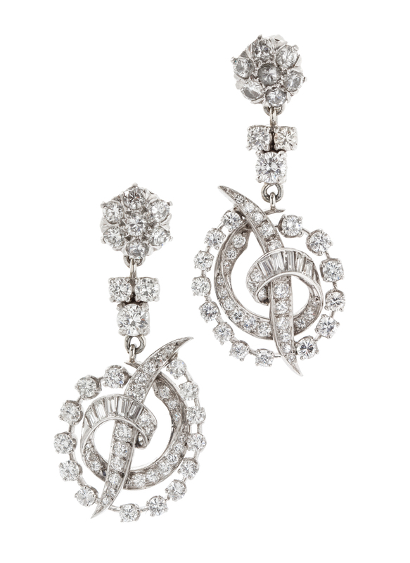 A Pair of Vintage Platinum and Diamond Earrings, Circa 1940-1950's,