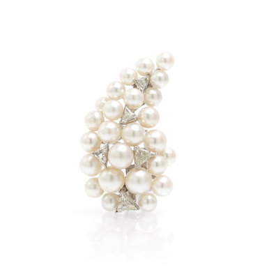 A White Gold, Cultured Pearl and Diamond Cluster Brooch,