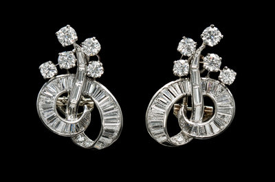 A Pair of Platinum and Diamond Earclips, Circa 1950,