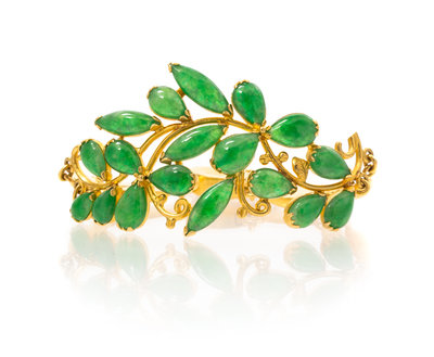 A High Karat Yellow Gold and Jadeite Bracelet,