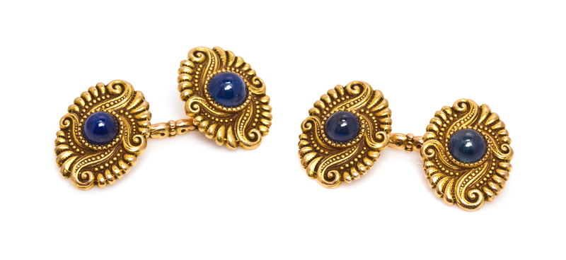 A Pair of Antique Yellow Gold and Sapphire Cufflinks,