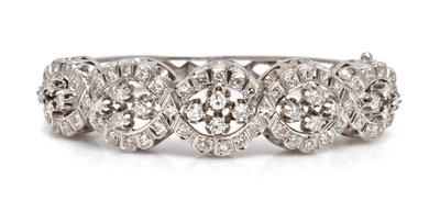 A 14 Karat White Gold and Diamond Bangle Bracelet,
