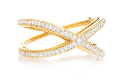 A Yellow Gold and Diamond Criss-Cross Bangle Bracelet,
