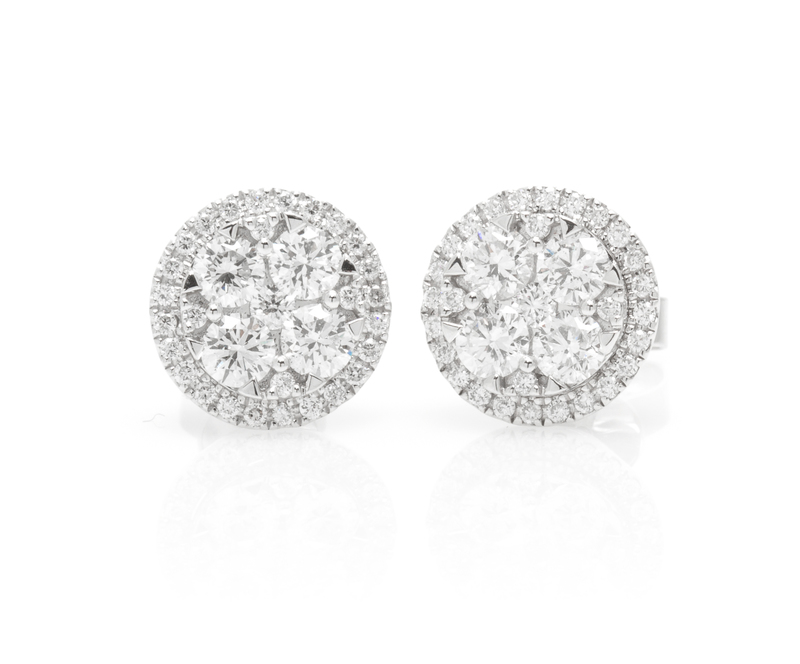 in a cluster design, containing 58 round brilliant cut diamonds weighing approximately 1.20 carats total.