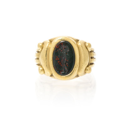 An 18 Karat Yellow Gold and Carved Bloodstone Ring, Kieselstein-Cord,