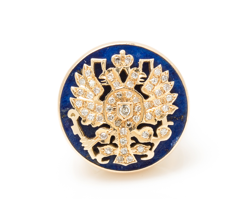An 18 Karat Yellow Gold, Diamond and Lapis Lazuli Russian Crest Ring,
