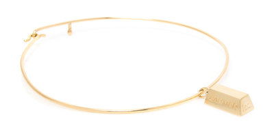 consisting of a one ounce gold ingot measuring approximately 24.50 x 12.30 x 9.08 mm, suspended from a gold neckwire.Ingot stamp: Cartier 18K 1OZ.Wire stamp: Cartier 18K.