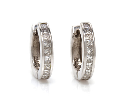 A Pair of 18 Karat White Gold and Diamond Hoop Earrings,