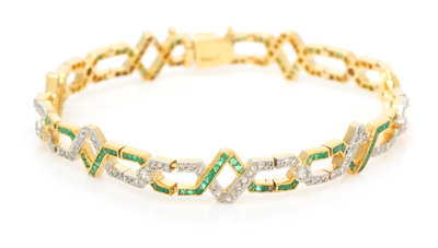 A Platinum Topped Gold, Diamond and Emerald Bracelet,