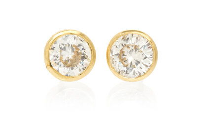 consisting of two bezel set round brilliant cut diamonds weighing approximately 2.32 carats total.Hand inscribed: BVLGARI 750 C 2193 1.11 cts. Hand inscribed: BVLGARI 750 C 2193 1.21 cts.