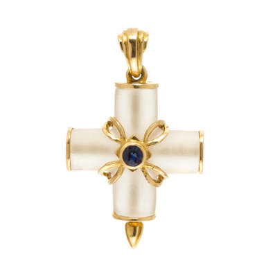An 18 Karat Yellow Gold, Rock Crystal and Sapphire Cross Pendant, Lalaounis,