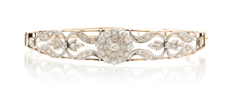 An Antique Platinum Topped Gold and Diamond Bangle,