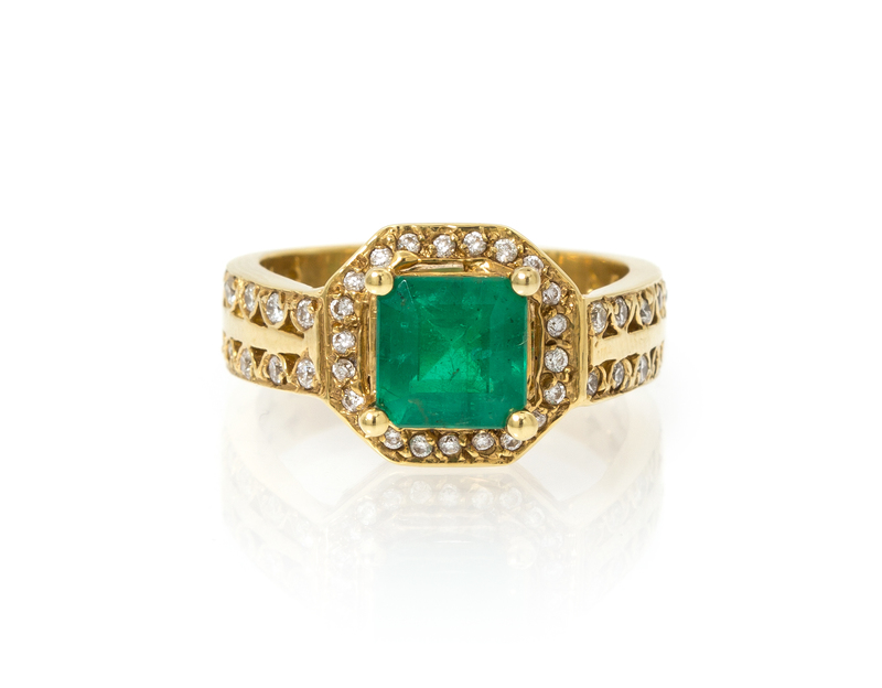 An 18 Karat Yellow Gold, Emerald and Diamond Ring,
