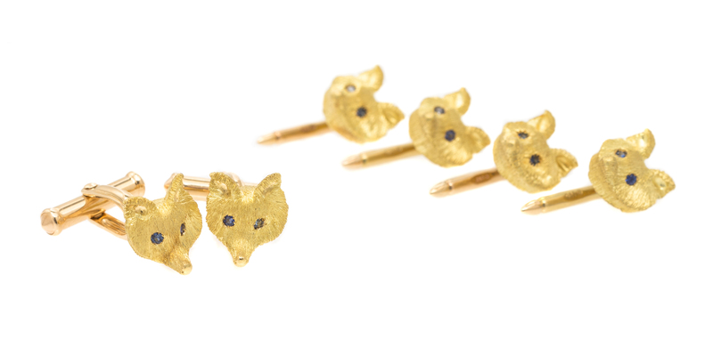 An 18 Karat Yellow Gold and Sapphire Fox Motif Dress Set,