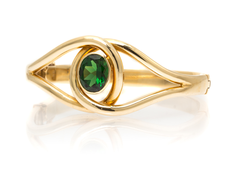 A 14 Karat Yellow Gold and Chrome Tourmaline Bangle,