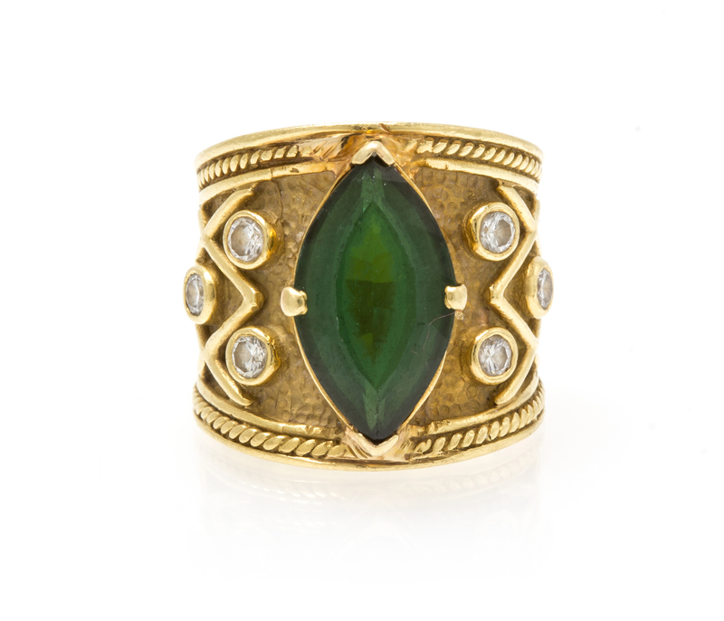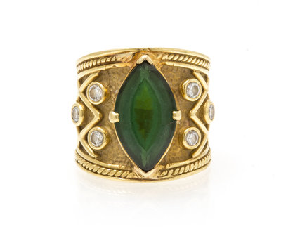 An 18 Karat Yellow Gold, Tourmaline and Diamond Ring,