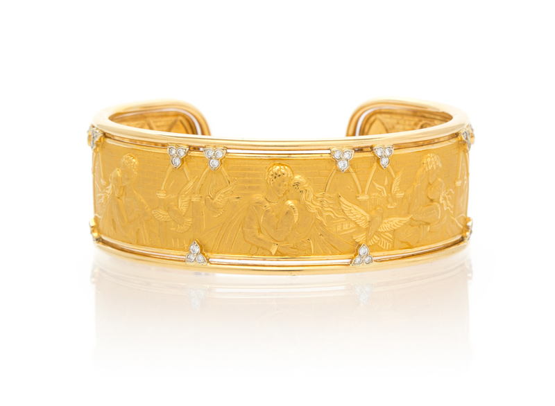 An 18 Karat Yellow Gold and Diamond Romeo and Juliette Cuff, Carrera y Carrera,