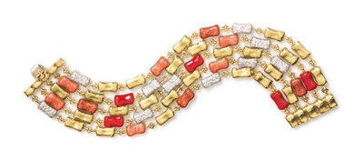 An 18 Karat Gold, Diamond and Polychrome Enamel Multistrand Bracelet, Italian,