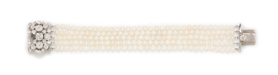 An Edwardian Platinum, Diamond and Pearl Multi Strand Bracelet,