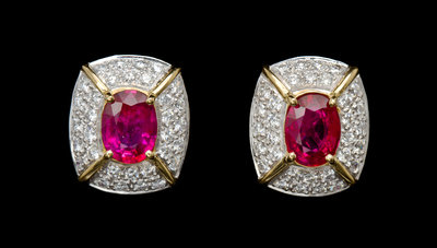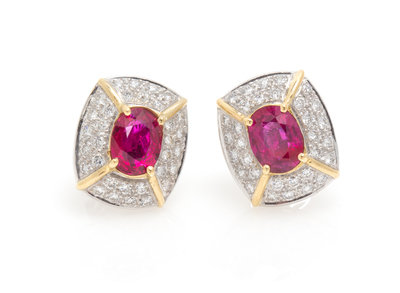 A Pair of 18 Karat Gold, Ruby and Diamond Earrings,