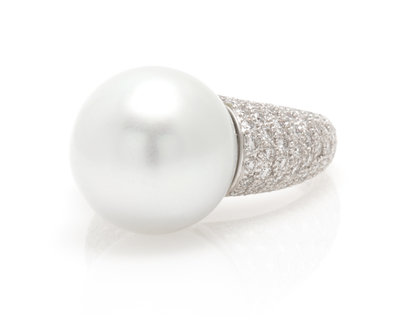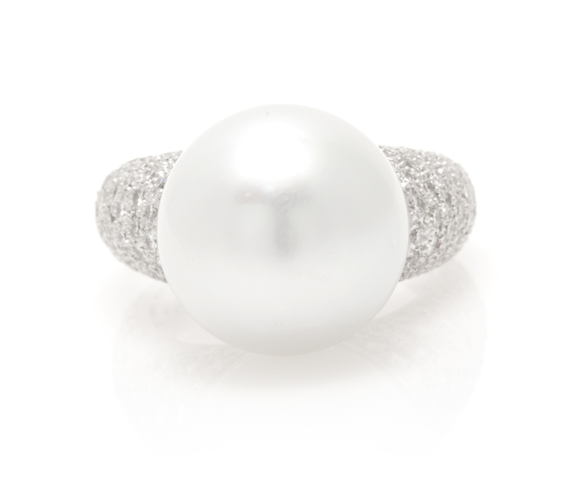 A Platinum, Diamond and Cultured South Sea Pearl Ring,