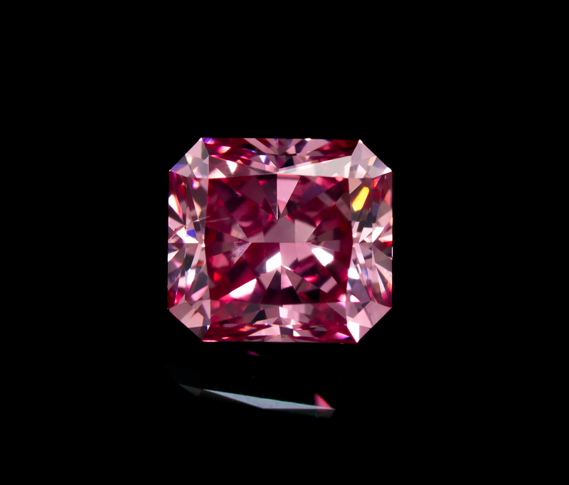 A 0.54 Carat Radiant Cut Fancy Intense Purplish Pink Diamond,