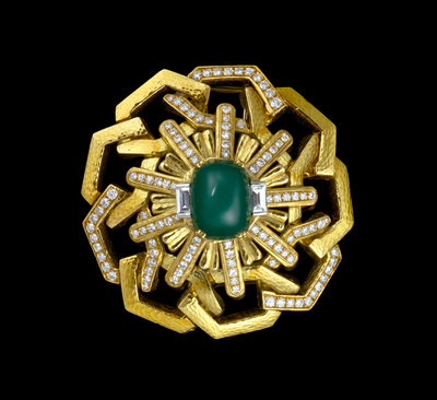 An 18 Karat Yellow Gold, Diamond and Dyed Chalcedony Brooch, David Webb,