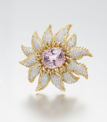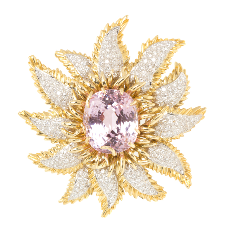A Vintage 18 Karat Yellow Gold, Platinum, Kunzite and Diamond Brooch, Tiffany & Co.,
