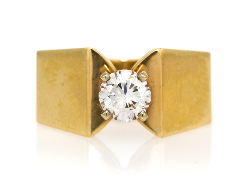 A 14 Karat Yellow Gold and Diamond Solitaire Ring,