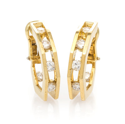 A Pair of 18 Karat Yellow Gold and Diamond Earclips,