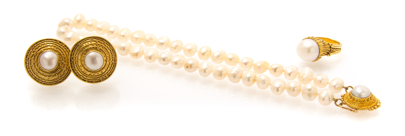 A High Karat Yellow Gold, Freshwater Pearls and Mabe Pearls Demi Parure, Luna Felix,