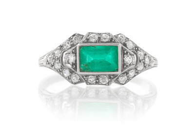 An Art Deco Platinum, Emerald and Diamond Ring,
