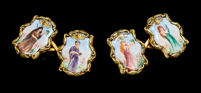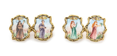 A Pair of Art Nouveau 18 Karat Yellow Gold and Portrait Miniature Cufflinks, Tiffany & Co.,
