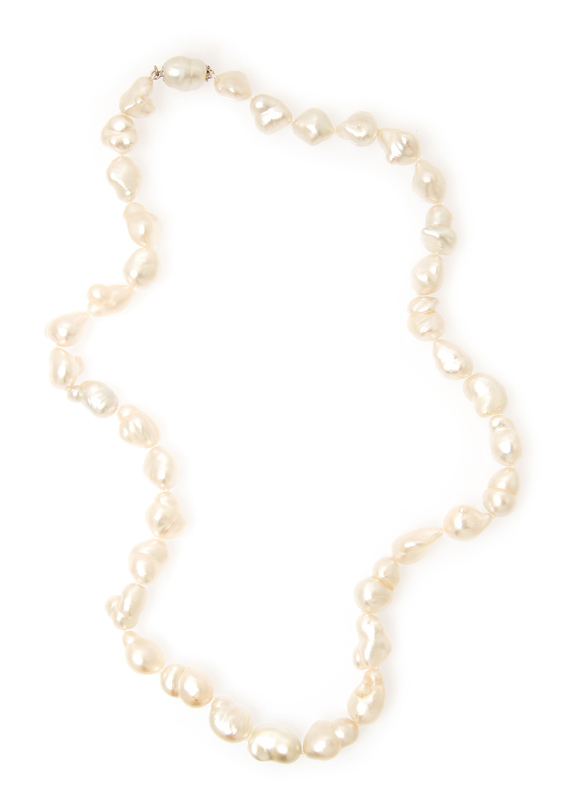 containing 38 baroque pearls measuring approximately 10.75-12.00 mm in diameter strung knotted with a hidden white gold clasp.