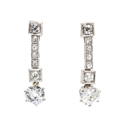 A Pair of Art Deco Platinum and Diamond Earrings,